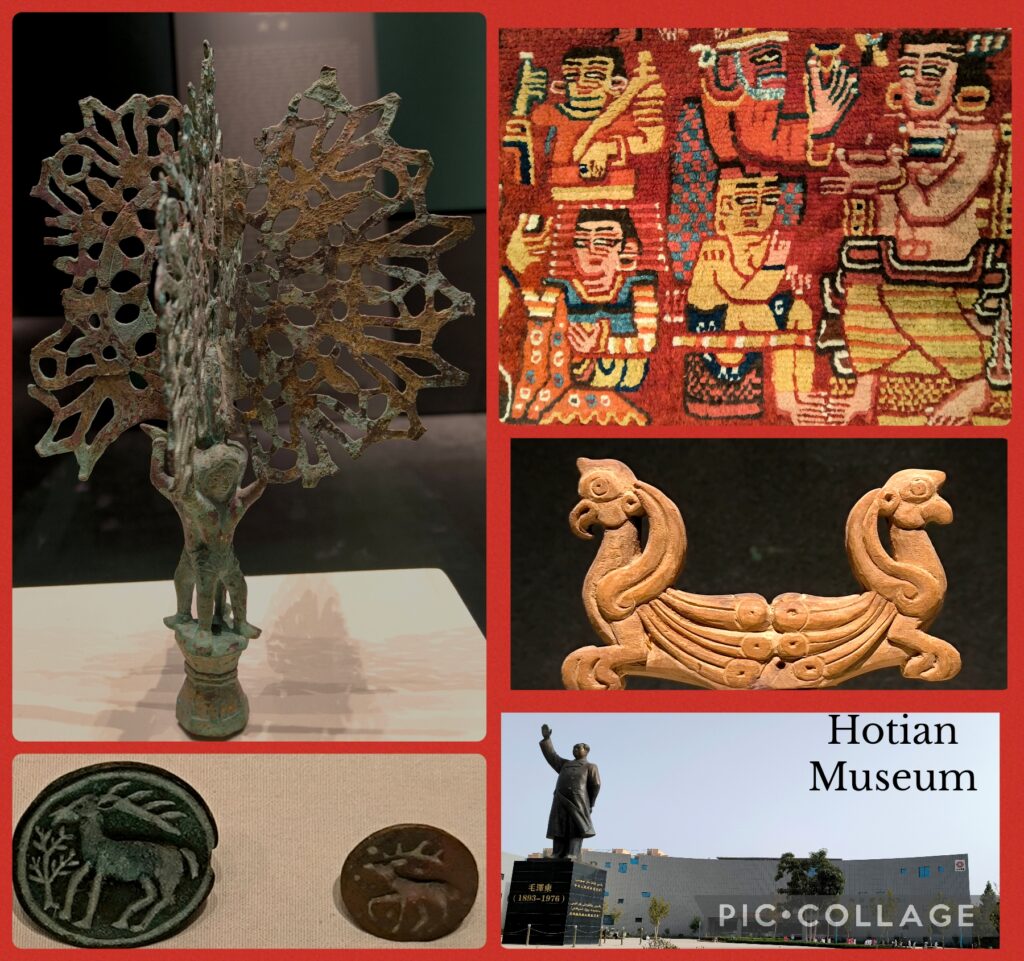 Hotian was the centre of the ancient Iranian Saka Buddhist Kingdom of Khotan 于闐 (56-1006CE). It has been famous for its jade, silk and carpets. We checked in the Mecure Hotel before 4pm. As we had no programme till 7:45pm, I decided to visit the Hotian Museum. Bing, Ellen, Cynthia and Sam went with me but left after an hour. I spent almost two hours at this relatively small museum where I found some interesting mural paintings and exhibits displaying Gandhara, Persian, and Central Asia influences. I took a taxi back to the hotel (8 RMB).