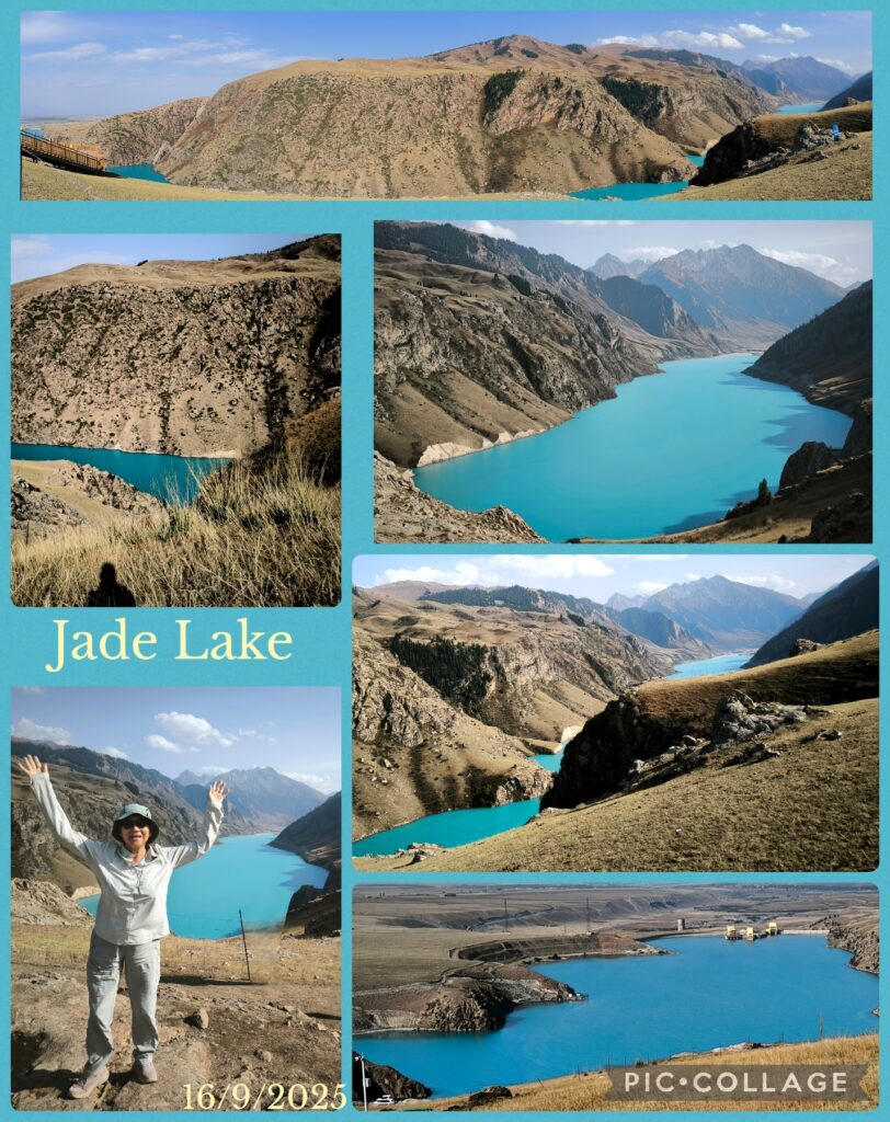 After the show, we drove another half an hour to the Jade Lake, another small alpine lake formed when a dam for a reservoir was built. The lake with an exquisite blue colour, though smaller than Tianchi, is more pleasant with few tourists. We returned to Zhaosu at 6pm. It was a pleasant day without excessively long drive!