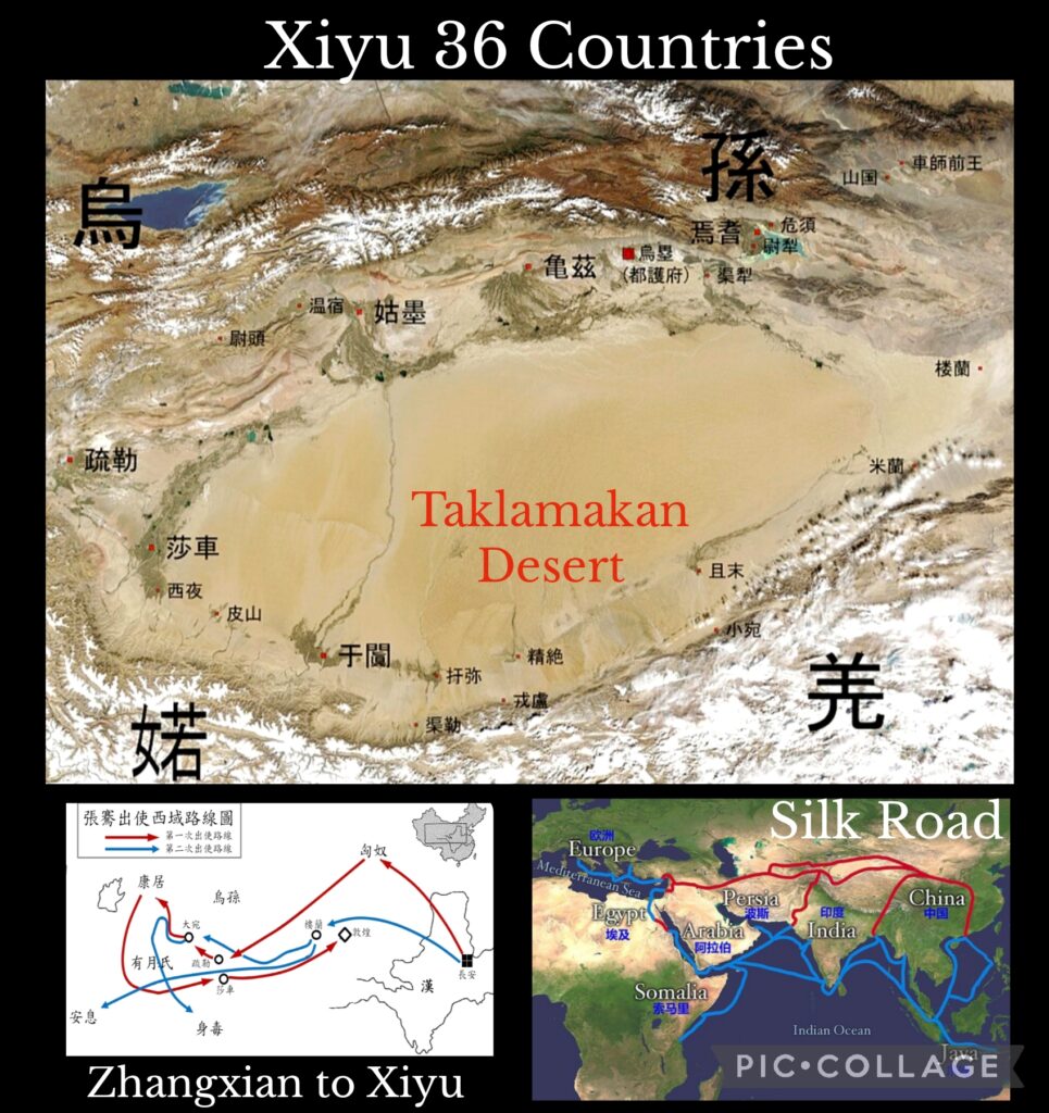 Xiyu 西域 (Western Regions), a historic name specified in Ancient chronicles between the 3rd BCE to 8th CE, refers to the vast land mass west of Yumen Pass (land of the Tarim Basin in present day southern Xinjiang) and Central Asia. During the Han dynasty (206 BCE -220 CE), Emperor Wu 漢武帝established a Protectorate over “Xiyu 36 countries” 西域三十六國 which had risen, fallen and eventually vanished during a millennium.