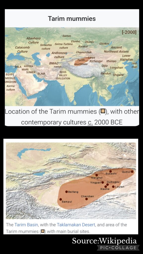 I am interested in history and archaeology. When I caught sight of the Kuqa Wei Jin Ancient Tomb Museum on a notice board at the exit of the naan palace, I asked Li to take us to the museum. The Wei Jin dynasties 魏晉朝 ran from 220 to 420 CE . This archaeological site with some 2,000 tombs was discovered in 2007 and the museum was formally opened in July 2024. Our driver Huang found his way to the Kuqa Museum instead. This museum was formally opened in May this year. We paid for a guide for 100 RMB and had a good tour for an hour visiting two exhibition halls. I learned more about Quici, the motherland of Kumarajiva鳩摩羅什 (344 – 413CE), a Buddhist monk, scholar, missionary and one of the four greatest translators of Chinese Buddhism.