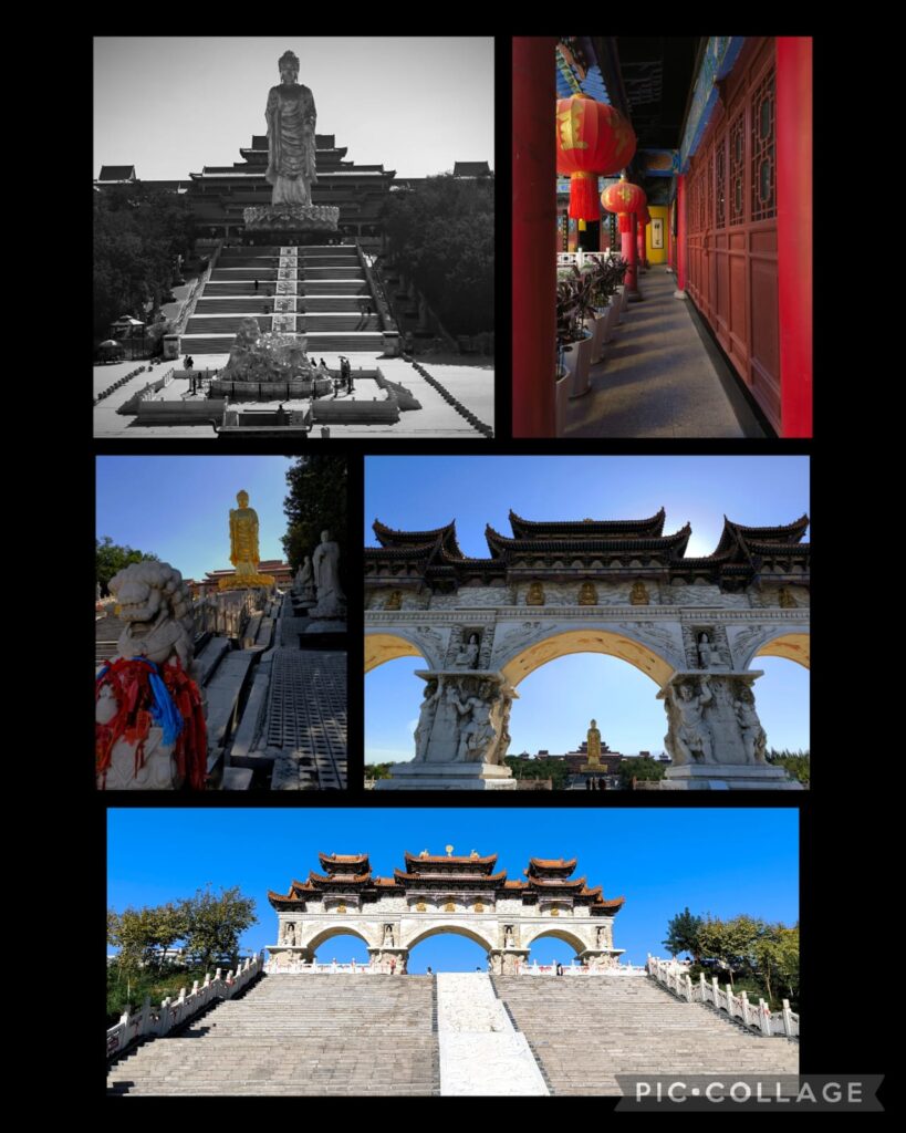 We had a leisure day and visited a temple in the Red Light Hill 紅光山. The temple was constructed during the Qing dynasty but destroyed in 1933. Reconstruction began in 1989, and the temple was completed in 2010. A standing golden Buddha at a height of 40.8m is a landmark. After a tour, we went to an excellent Xinjiang restaurant 吉尔花园生态餐厅 for lunch.