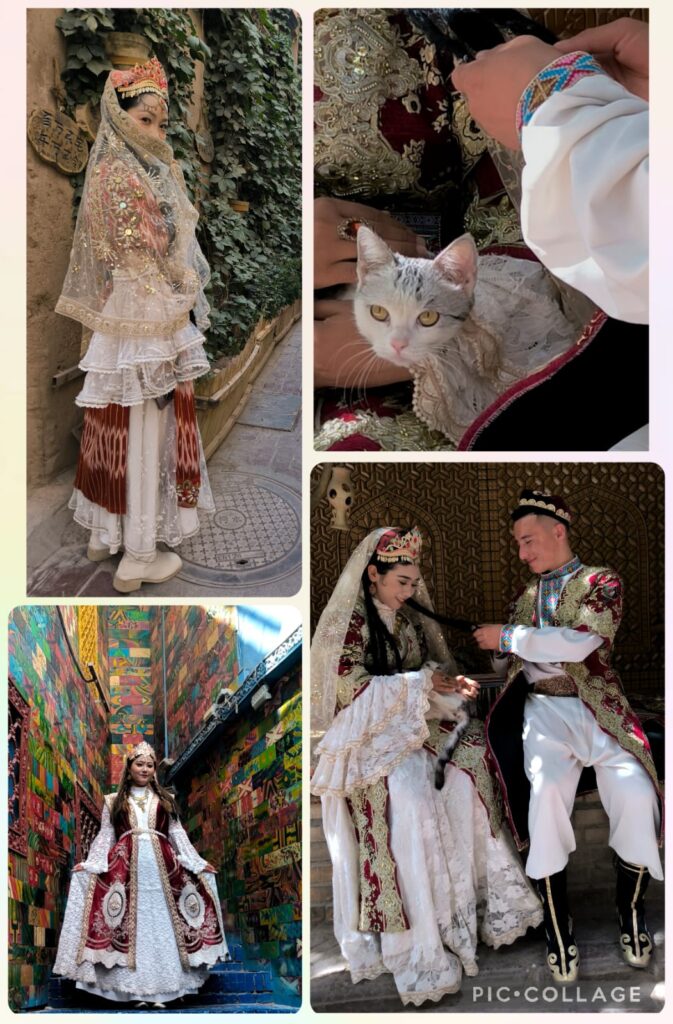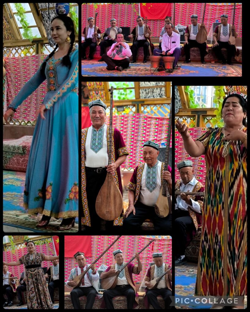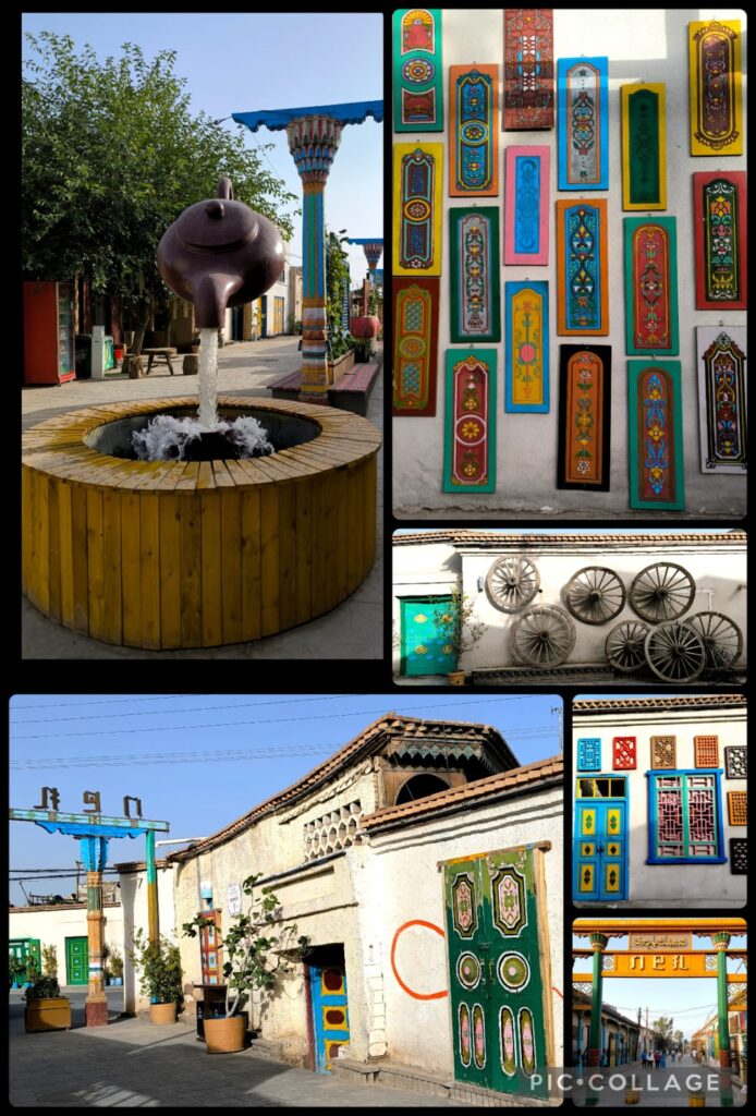 After lunch, we visited old Yining with a guide. We went into two traditional Uyghur houses, strolled along a residential area and had a homemade ice-cream. After a guided tour for an hour, we watched a cultural performance in a big house that used to serve as a caravan. We looked at the elegant and well-preserved house of this rich man.