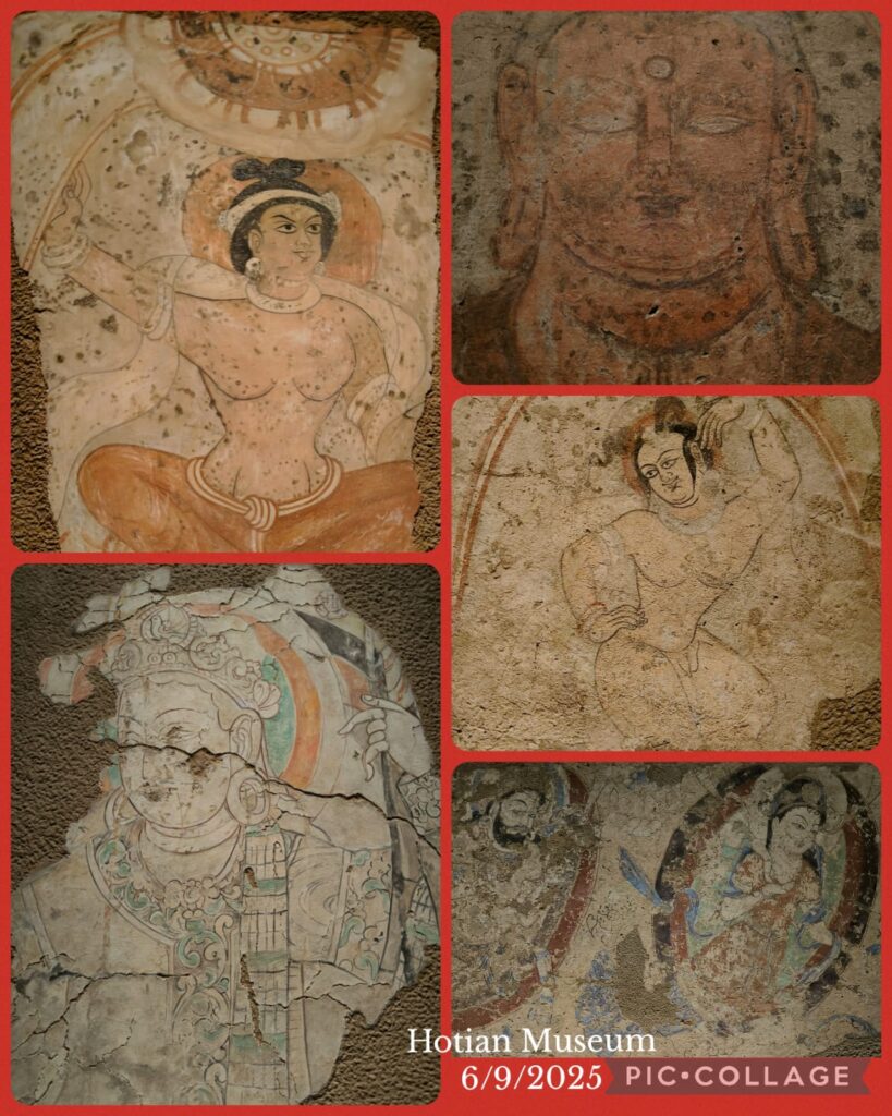 Hotian was the centre of the ancient Iranian Saka Buddhist Kingdom of Khotan 于闐 (56-1006CE). It has been famous for its jade, silk and carpets. We checked in the Mecure Hotel before 4pm. As we had no programme till 7:45pm, I decided to visit the Hotian Museum. Bing, Ellen, Cynthia and Sam went with me but left after an hour. I spent almost two hours at this relatively small museum where I found some interesting mural paintings and exhibits displaying Gandhara, Persian, and Central Asia influences. I took a taxi back to the hotel (8 RMB).
