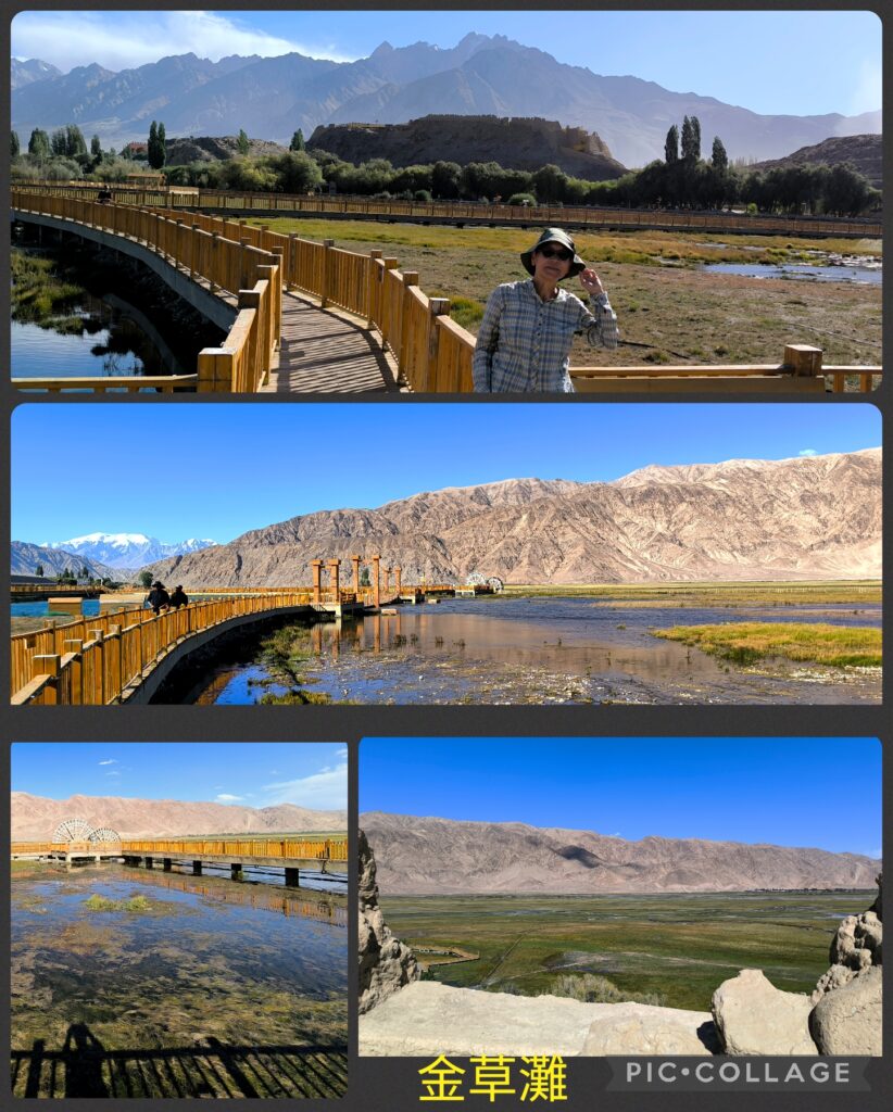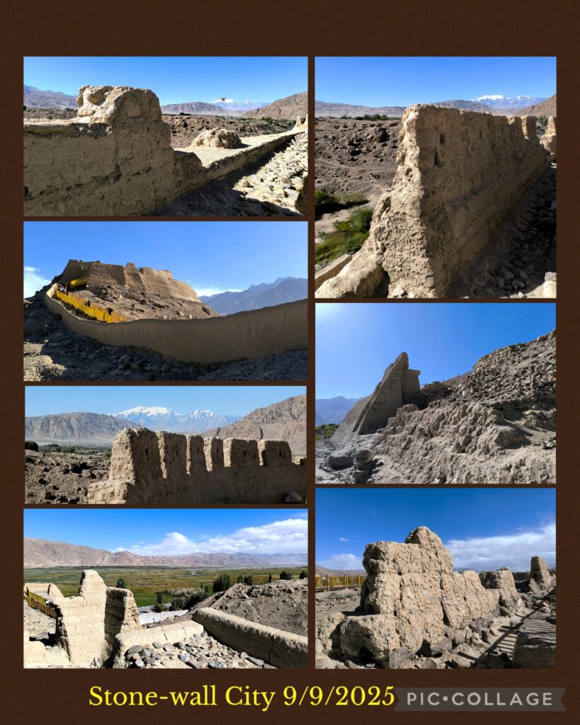 After lunch we visited the historic Stone City石頭城 which I did not have time to visit in 2018. This ancient stone castle located in the north of the city, is a famous heritage along the ancient Silk Road which dates back to the Jin Dynasty. Archaeologists believe the city was the site of the ancient Heptanese Kingdom in the Tang Dynasty. We spent over an hour wandering through the stone city walls, gates, watch towers, etc. There is a temple ruin in the Outer City while the Inner City mainly comprised the royal palace, government offices, official residences and temples. There is a platform which is supposed where Xuanzang had preached during his stay in the city on his way back to China. After a quick tour of the Inner City of the Stone City, I spent half an hour enjoying the grassland nearby. I still remembered my time in the grassland in an early September morning in 2018.
