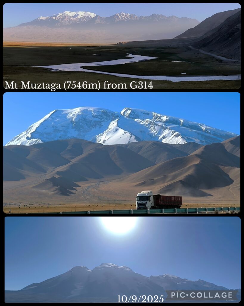 We set off at 9am and had two nice photo stops to take photos of Mt Muztaga and the grassland. The panorama photo of the snow-capped mountains and the lake was taken with drone by our driver Wang.