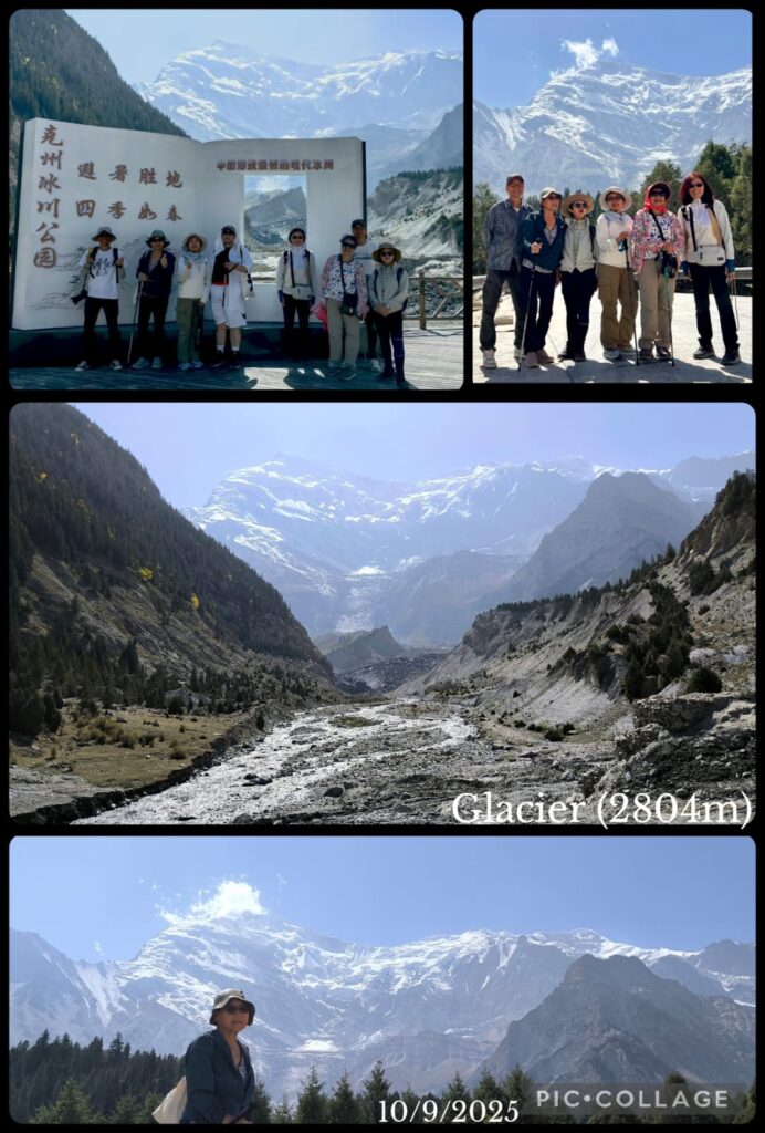 At the visitor centre, we had to take a short ride on another bus and walked 1.5 km uphill to reach a viewing platform. Unfortunately owing to a landslide, the platform was closed. We could not get a closer look of this glacier. We were back in Kashi after 6 pm.
