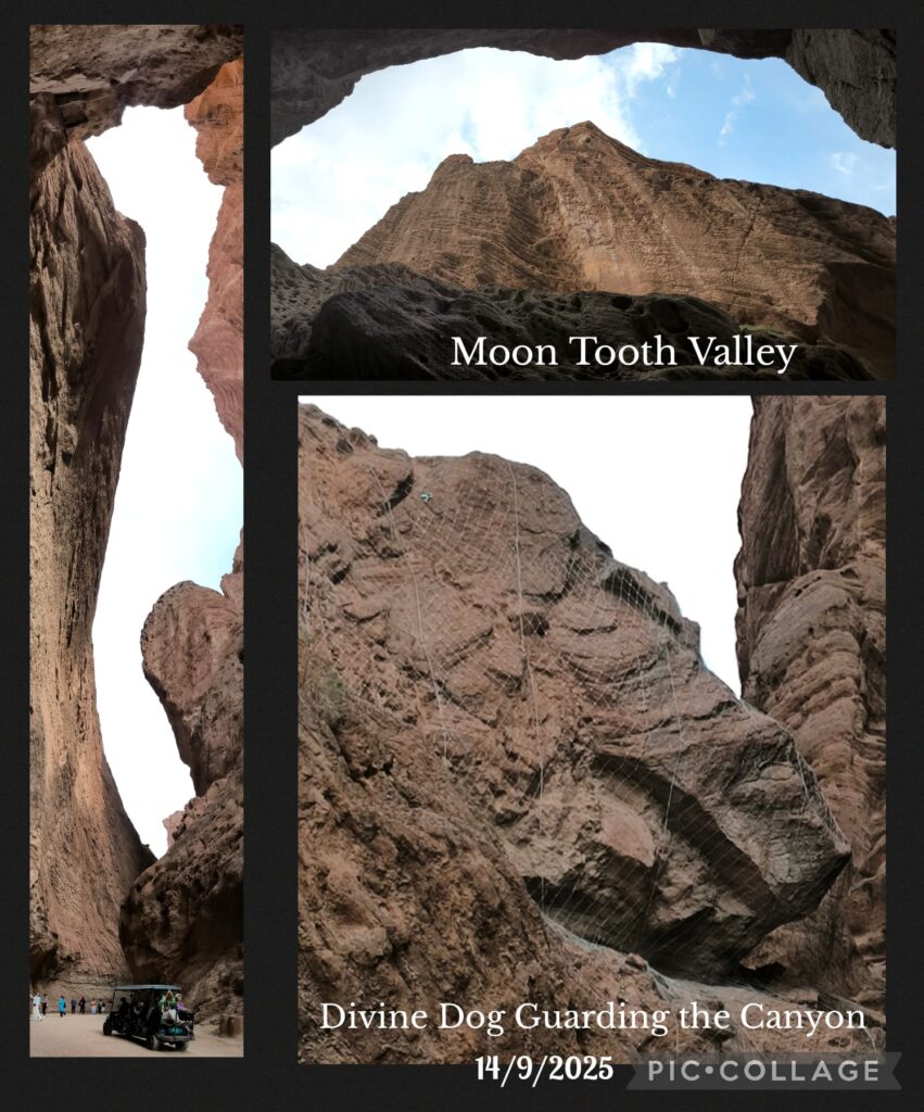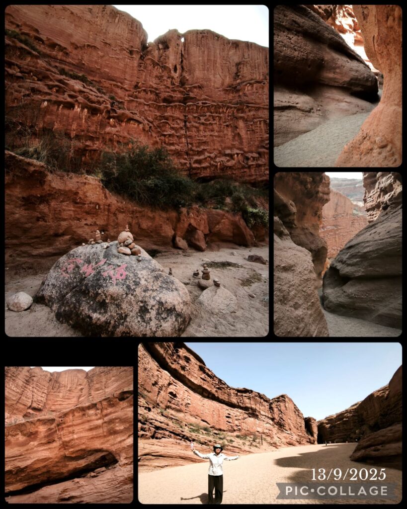 We departed at 9 pm. After a relative short drive, we arrived at the Mysterious Tianshan Grand Canyon (or Keziliya Grand Canyon) which is spectacular with reddish-brown cliffs formed by millions of years of natural erosion, featuring oddly-shaped rocks, craggy pinnacles, and deep ravines. It contains an ancient A-ai Grottoes (or Kizil Thousand-Buddha Grottoes) of historical significance which is closed. We had two hours and I walked slowly on my own soaking in the atmosphere.The natural wonders are awesome and the narrowest section is only 0.4 metre wide. After exploring all possible sites en route (less than 2 km I guess), I took a ride back (20 RMB)