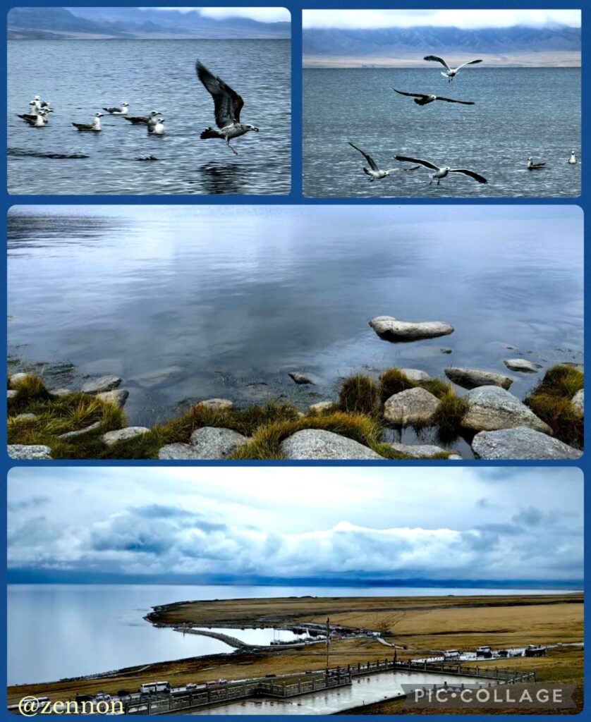 The programme today was a drive around the Sayram Lake (historically known as the “Clean Lake”) which is an endorheic freshwater lake in the northern Tianshan Mountains at Bortala Mongol Autonomous Prefecture less than 50 km from the border with Kazakhstan. At an elevation of 2070m above sea level, the lake has a surface area of 459 km² and a round-the-lake drive of 100km. We would have four stops including the Commanding Platform Relic Park with Eight Banners and the swan area. We saw plenty of gulls but no swan. Luckily the weather improved slightly: at least it was not raining heavily whenever we stepped off the vehicle.